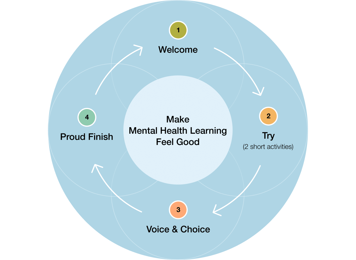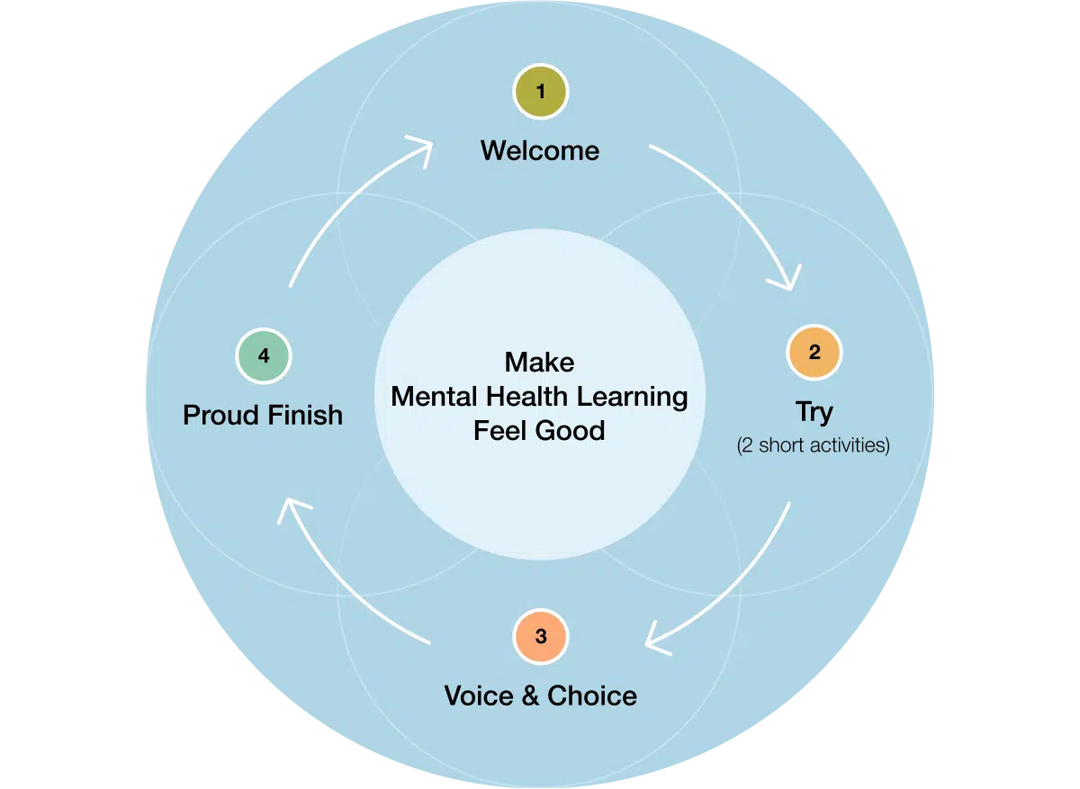 This curriculum makes mental-health learning feel safe, engaging, and useful. Every session follows the Feel-Good Loop: Welcome → Try → Voice and Choice → Proud Finish.